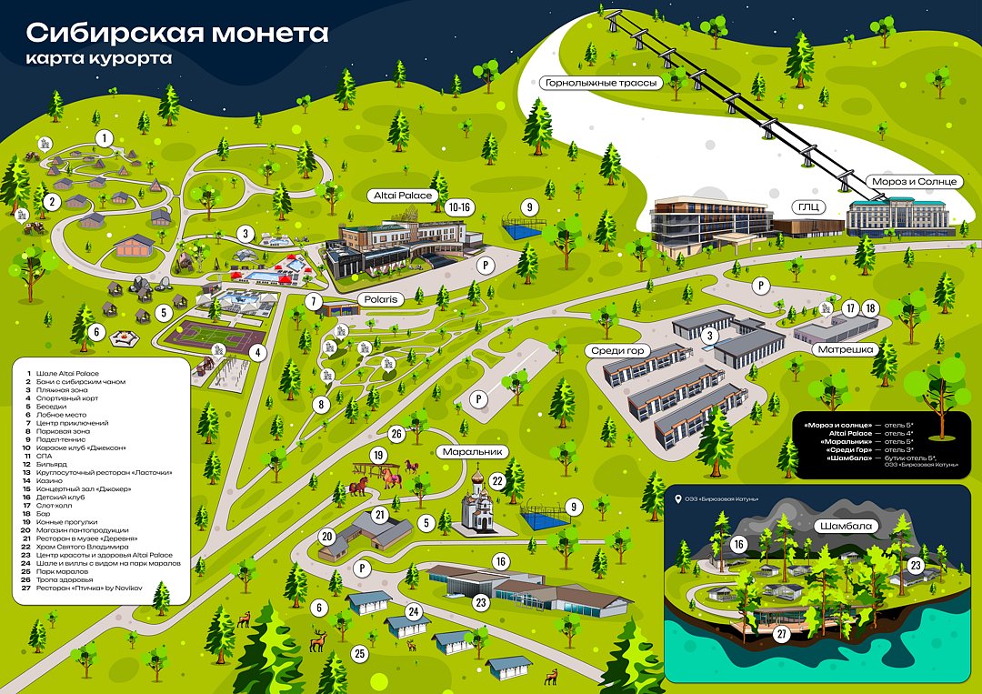 Отель «Среди Гор» категории 3* расположен в живописной горной долине Алтая всего в 30 минутах от аэропорта Горно-Алтайска и является частью всесезонного курорта развлечений в горах «Сибирская Монета». Отель предлагает современную инфраструктуру, завораживающие виды на алтайские горы, а также широкий спектр развлечений для гостей любых возрастов.