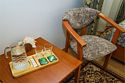 телевизор, телефон, холодильник, кондиционер, двуспальная кровать, односпальная кровать, шкаф для одежды, чайный набор, чайник, туалетный столикВ гостиничном номере
