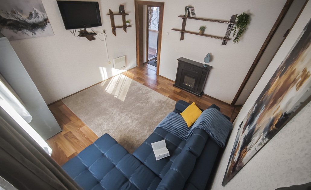 Коттедж 72м2. Три спальные комнаты с двуспальными кроватями. Кухня-гостиная с угловым диваном, телевизором, камином и обеденной зоной. Кухня: эл. плита, духовка, холодильник, микроволновка, чайник, набор посуды. Санузел с душевой. Зона барбекю.