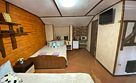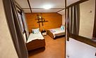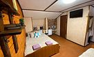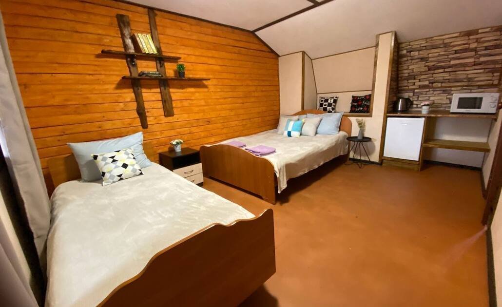 1-комнатный номер с двуспальной и односпальной кроватями. В номере есть телевизор, минихолодильник, микроволновка, чайник. Санузел с душевой.