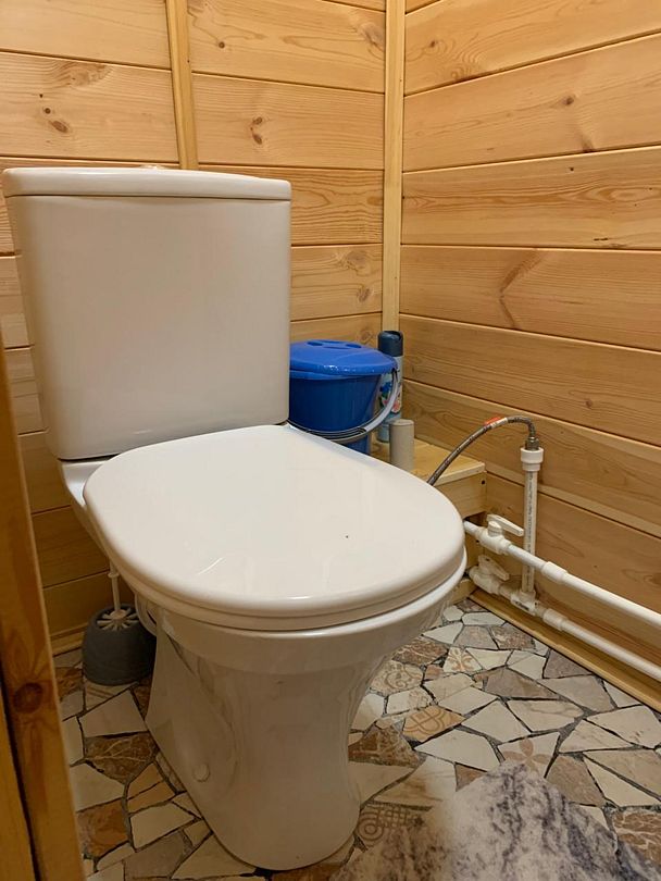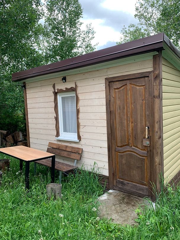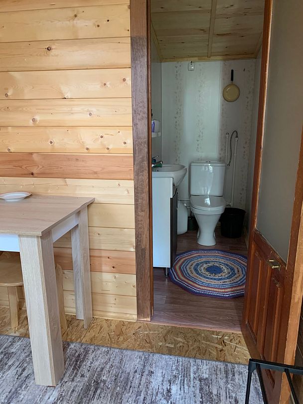 Санузел и душ находятся на улице — в отдельно стоящих помещениях рядом.