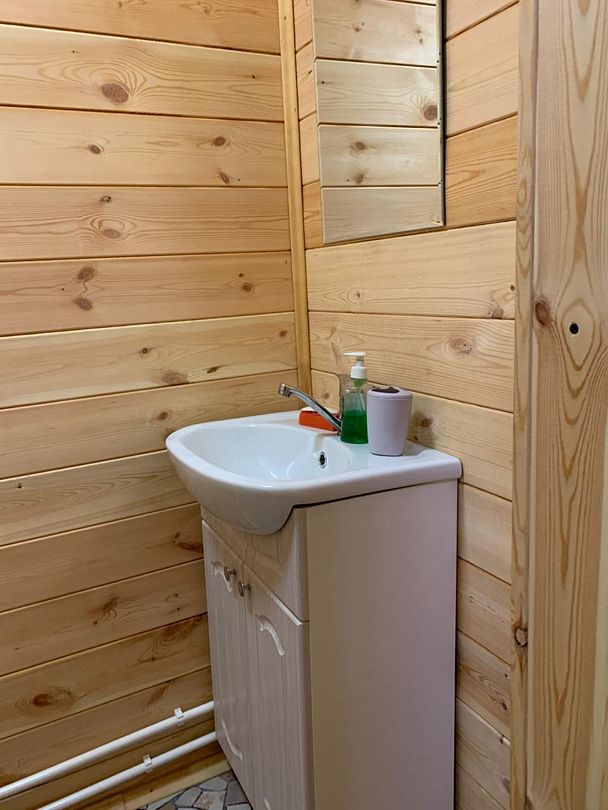 Санузел и душ находятся на улице — в отдельно стоящих помещениях, рядом с корпусом.