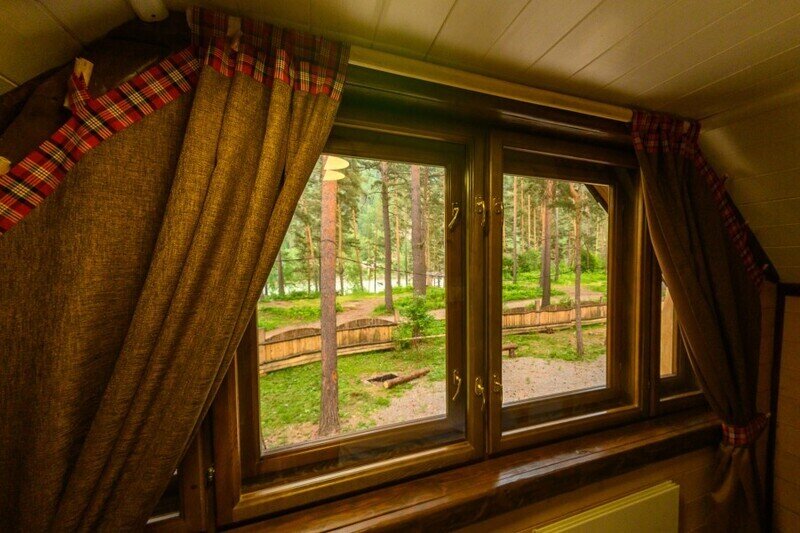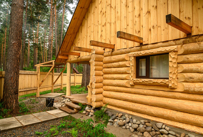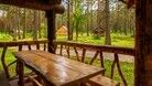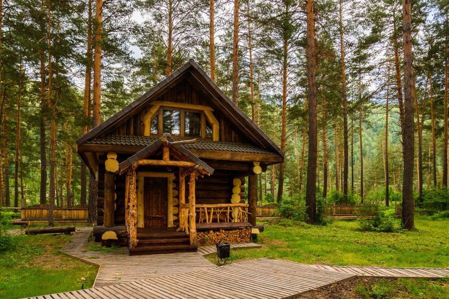 «Таежный угол» предлагает отдельный летний дом-шале из бруса со своей террасой и мангалом. Внутри все необходимые удобства.