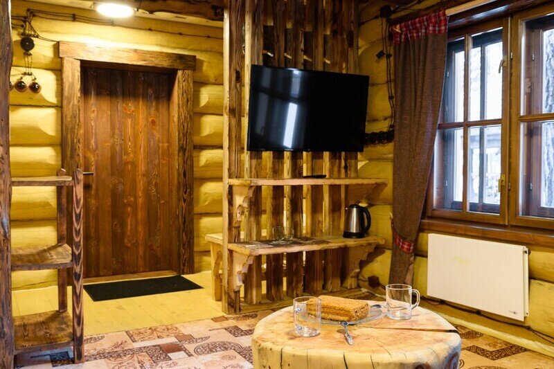 «Таежный угол» предлагает отдельный уютный бревенчатый дом ручной рубки из кедра. Внутри все необходимые удобства.