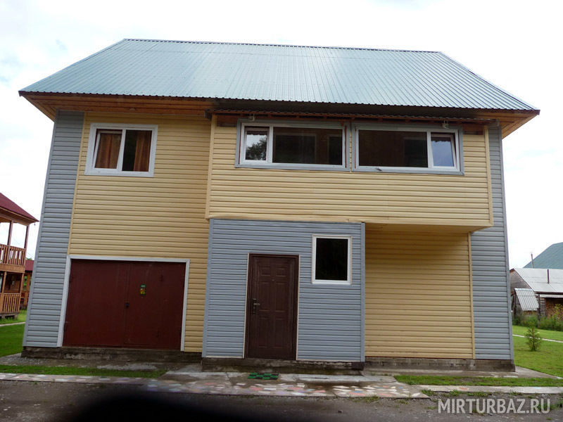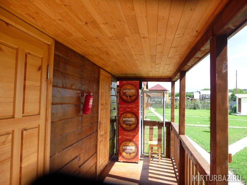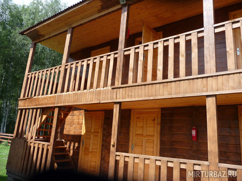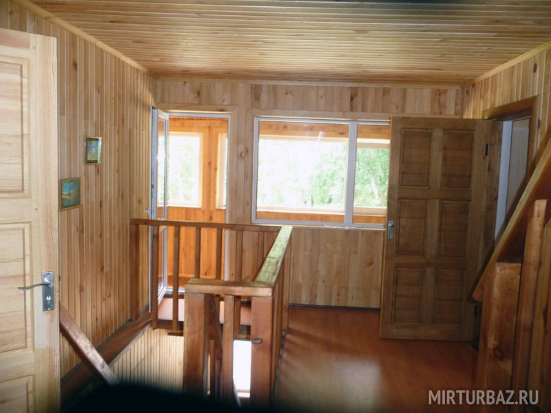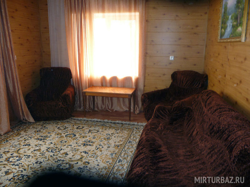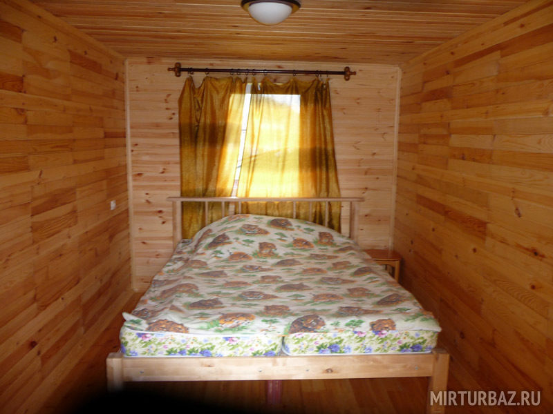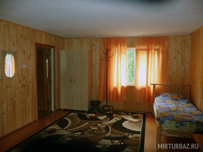 В номер входит: одна двухспальная кровать, вешалка для одежды, две прикроватные тумбочки, два табурета, журнальный столик. Санузел и душ с горячей водой находятся на территории базы. Кухня пристроена на первом этаже дома.