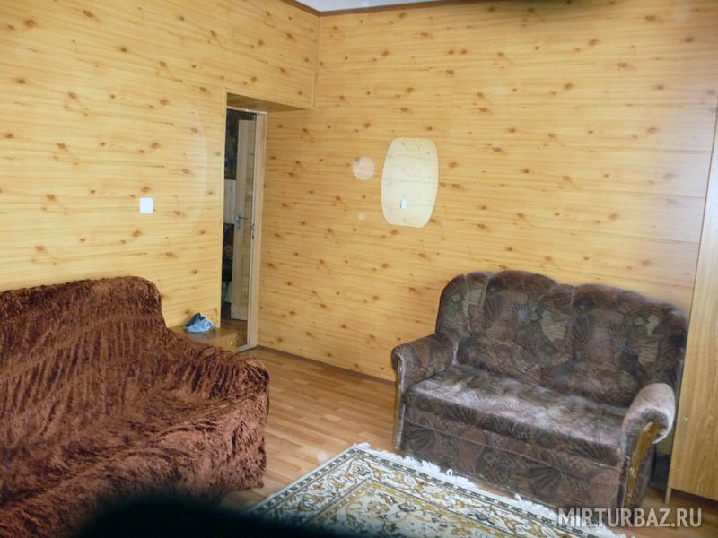 Двухместный: раскладной диван, два кресла, маленький диванчик, шифоньер, журнальный столик, зеркало, одна прикроватная тумбочка. Кухня и душевая с горячей водой и санузел на этаже.