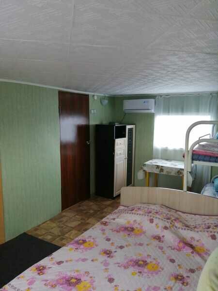 Уютный домик для комфортного пребывания 6-ти гостей. В доме имеется: 2-спальная кровать, 2 односпальных кровати, двухъярусная кровать, тумба, шкаф, удобства на улице, кухня общая на территории.