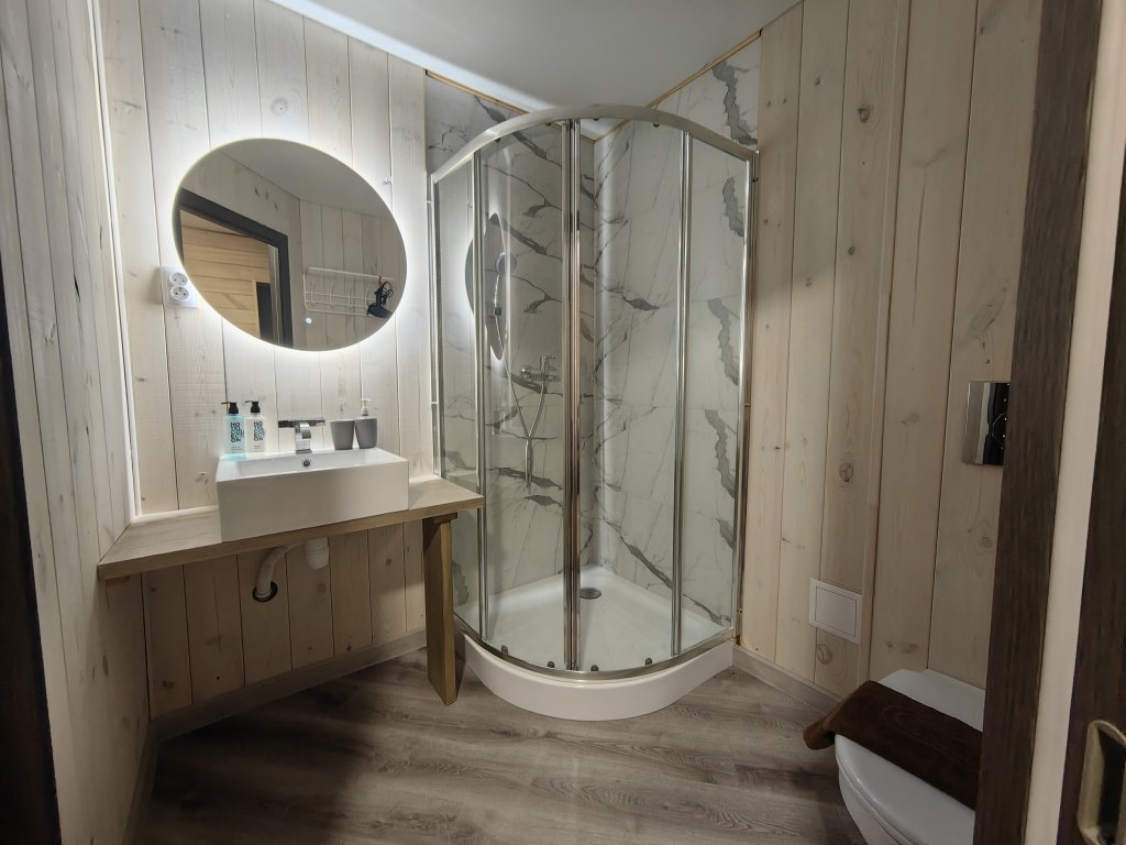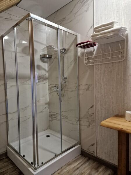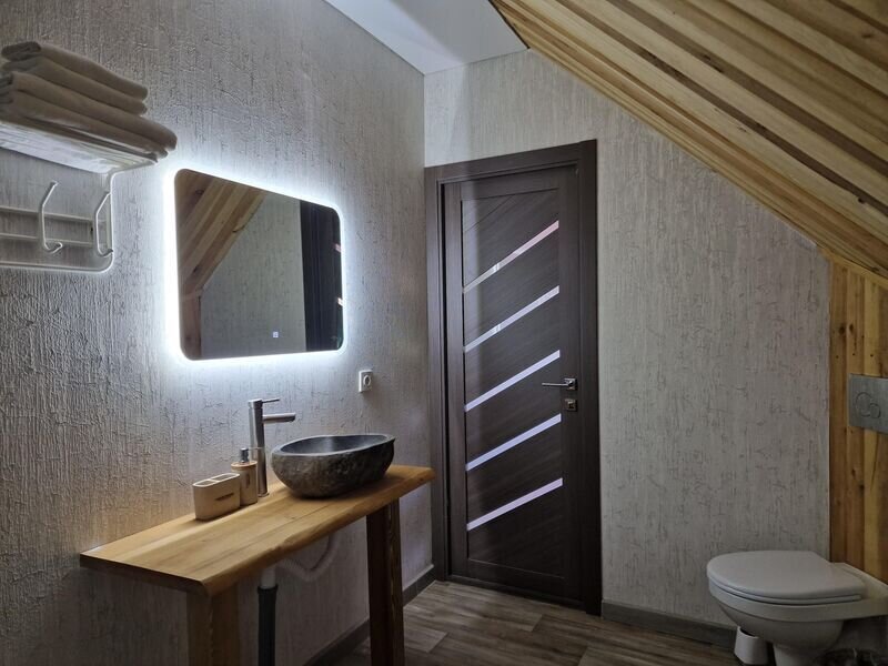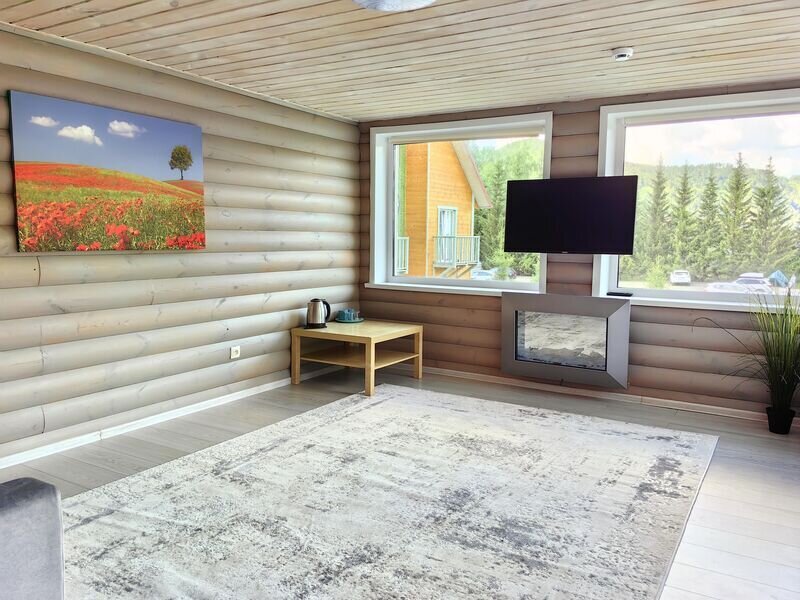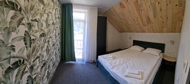 Уютный двухкомнатный номер с мини-кухней на втором этаже, имеет балкон и террасу с потрясающим видом на горы и лес.