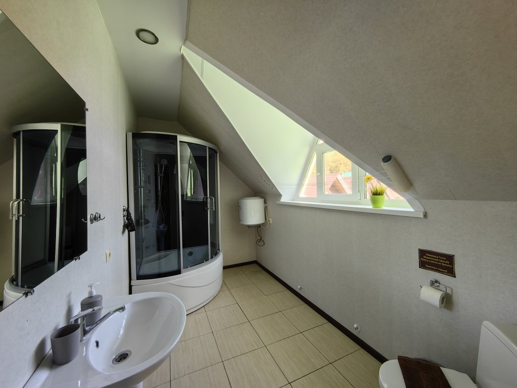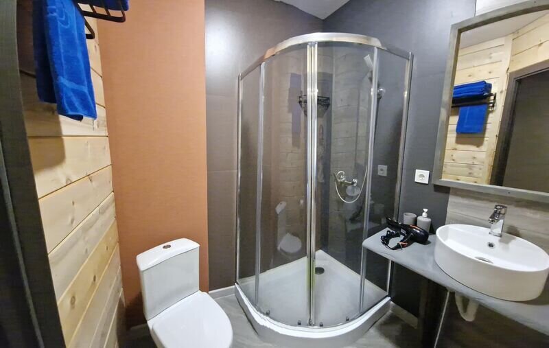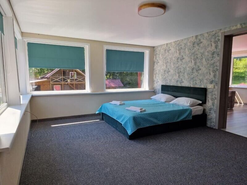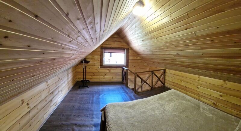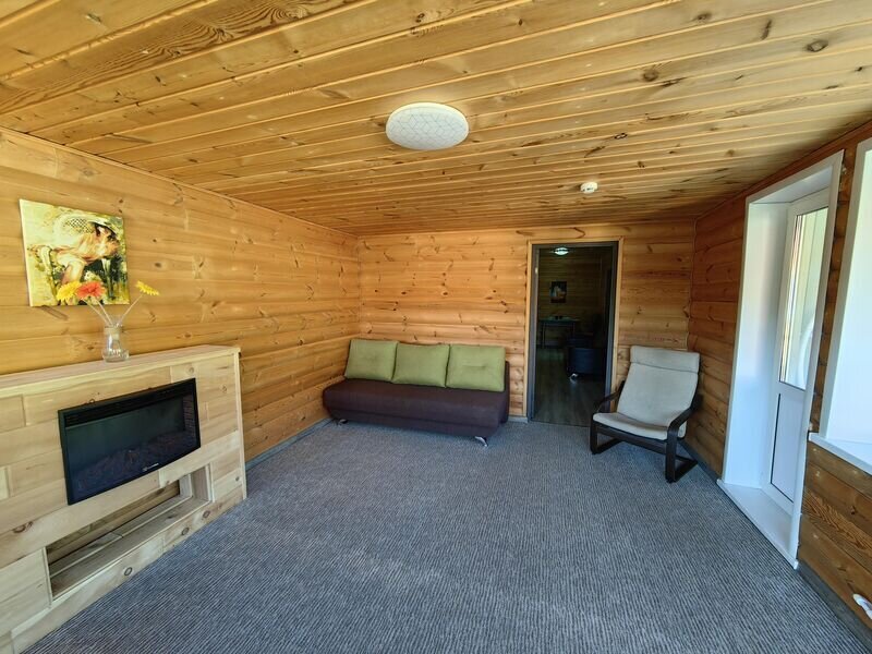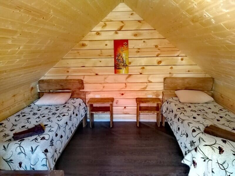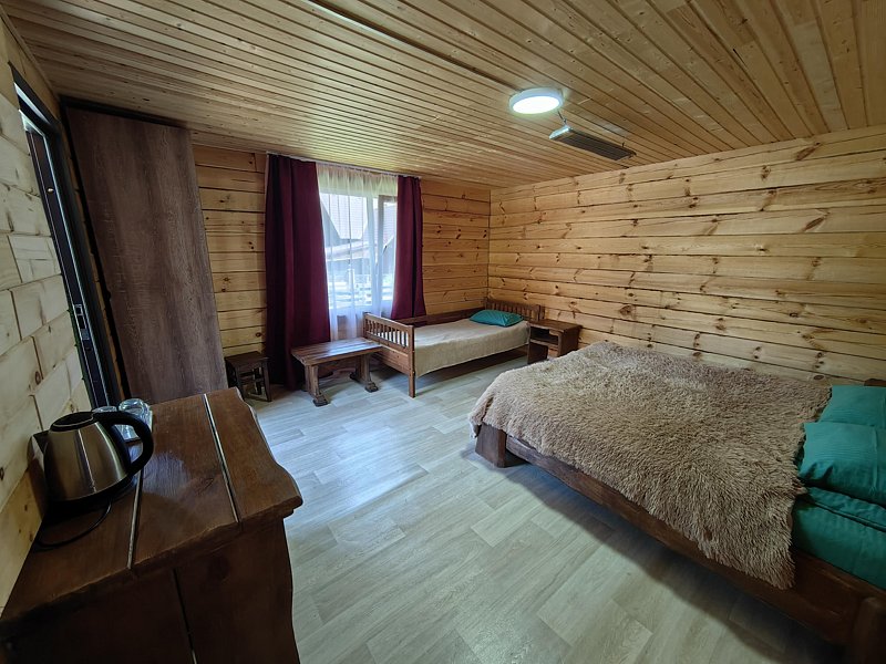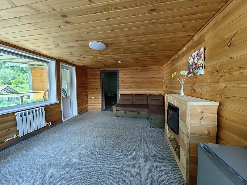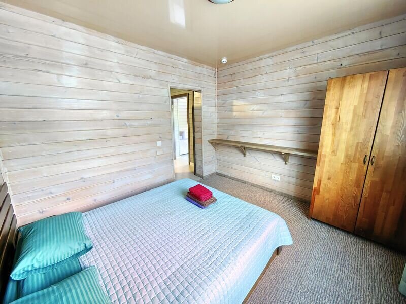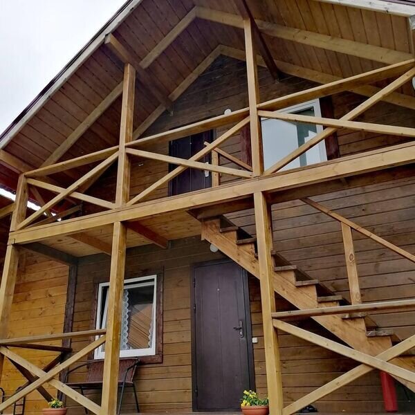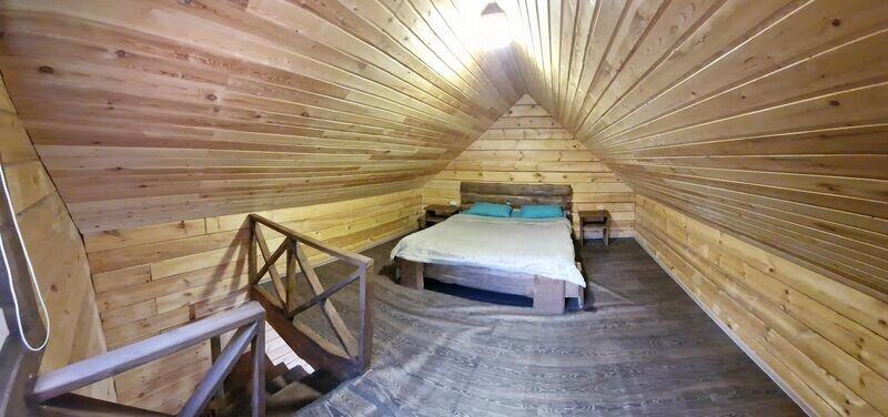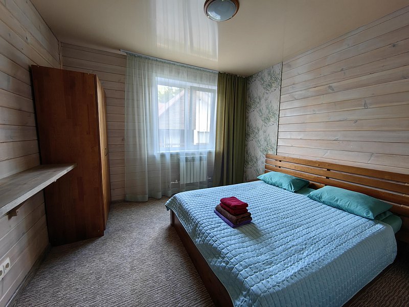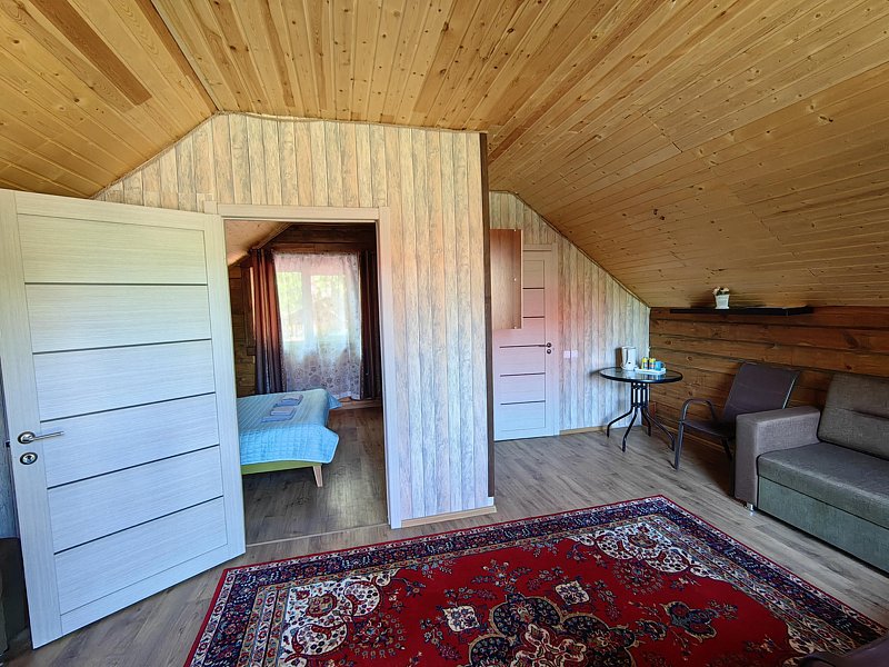 Двухкомнатный номер в коттедже расположен на втором этаже с балконом. Гости первого и второго этажей коттеджа могут воспользоваться летней кухней, примыкающей к коттеджу.