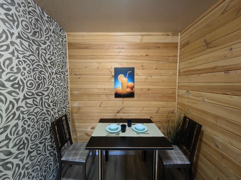 Уютный двухэтажный домик с приватной террасой и бесплатным персональным мангалом. На территории, для удобства гостей, имеется летняя кухня для самостоятельного приготовления пищи.