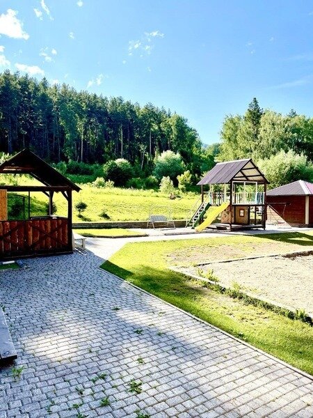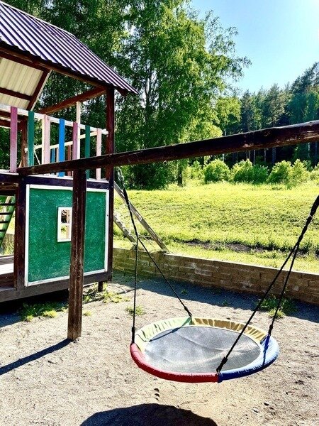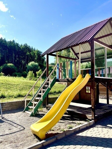 На территории базы отдыха имеются специально оборудованные зоны для маленьких детей, включая детскую площадку, песочницы и качели.