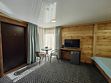 Двухкомнатный номер люкс с комнатой-прихожей расположен на втором этаже с приватной террасой и захватывающим видом на горы.