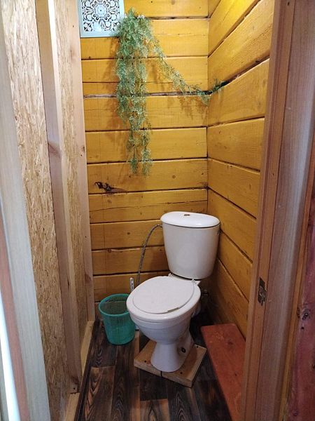 Отдельный двухэтажный дом со всеми удобствами. На первом этаже санузел (душ, туалет), веранда, гостиная со спальными местами (2 места) и кухонной зоной. На 2-ом этаже спальня (2 места). Лестница внутри.