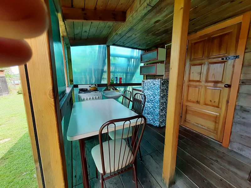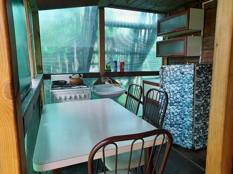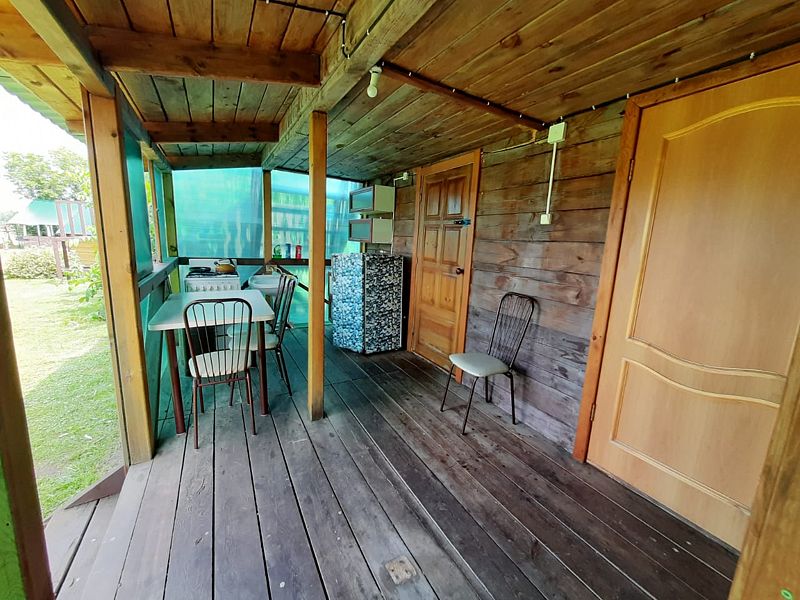 2 двуместных номера, оборудованная кухня с холодильником, газовой плитой и посудой в 10 метрах. Рядом летний и теплый душ.