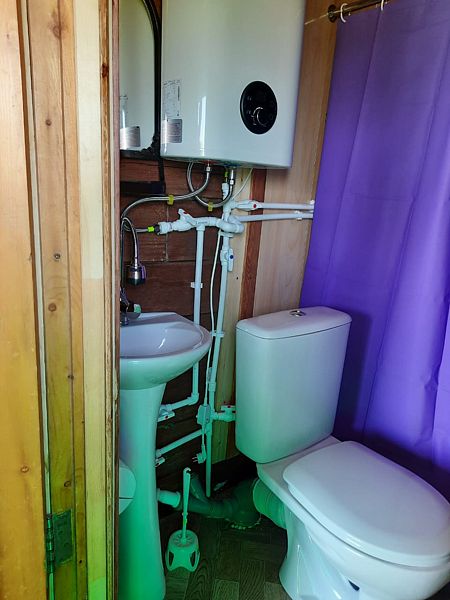 Рядом летняя кухня, теплый душ и туалет на территории.