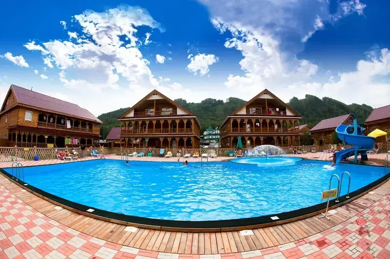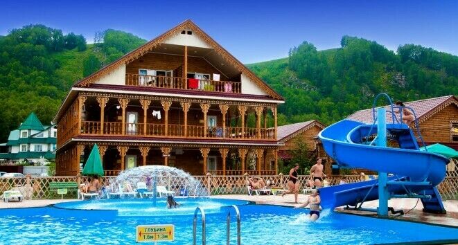 Для активного отдыха на территории есть бассейн с фонтаном и горками, там проводятся уроки по аэробике.