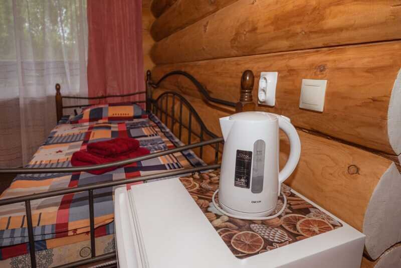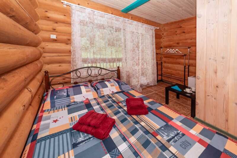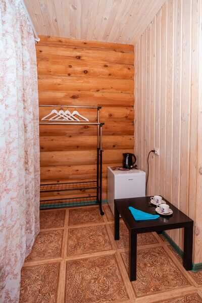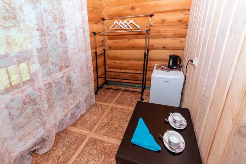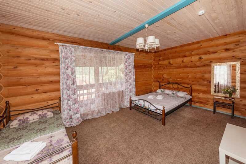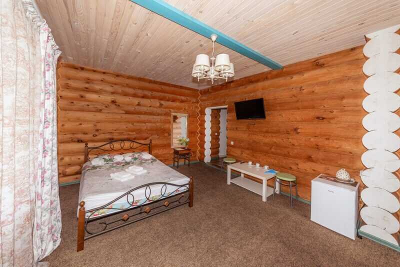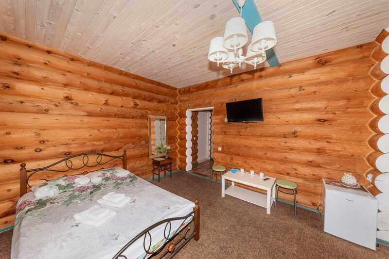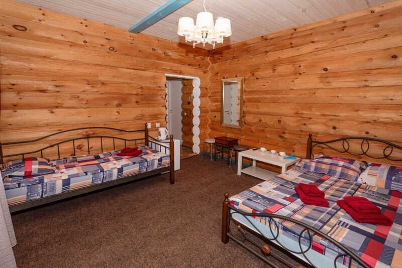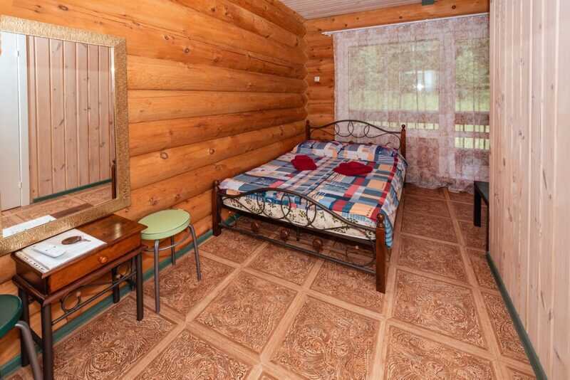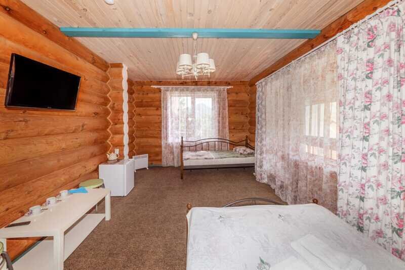 Номерной фонд: два двухэтажных кедровых коттеджа по 10 номеров в каждом. Вместимость базы составляет 56 чел. (в том числе 40 основных мест, 16 дополнительных).