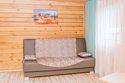 В домике две спальни с двуспальными кроватями, гостиная. В гостиной обеденный стол, диванчик,
