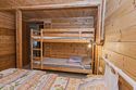 В одной спальне двуспальная кровать, двухъярусная кровать, комод, в другой двуспальная кровать, односпальная, комод.