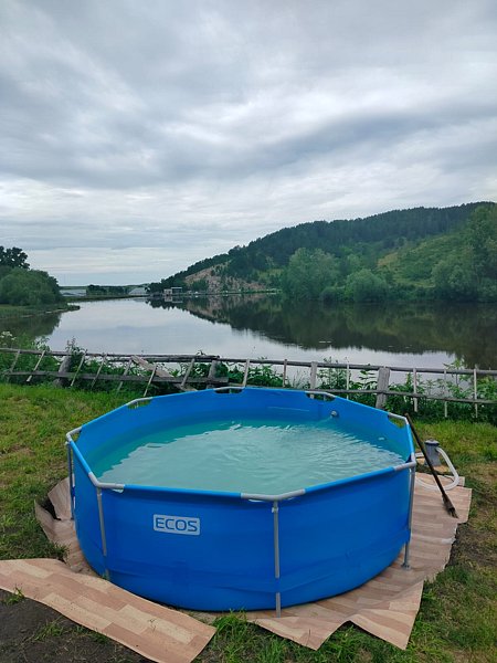 Отдых с друзьямиДостоинстваНесмотря на то, что база находится практически на дороге, что несколько мешает ночью, но прекрасный внутренний на двор на берегу пруда с детской площадкой (качели, бассейн, батут) и отдельными зонами отдыха для постояльцев - оставляют хорошее впечатление. Привлекательности добавляют: возможность рыбалки и катания на сапе; в пяти минутах ходьбы музейные объекты камнерезного дела; рядом магазины; поездка на озеро Белое с прекраснвм песчаным дном и прозрачною водой займет 10 минут на машине. Это мместо можно смело рекомендовать для отдыха и семьей и компанией. Хозяева приветливые и радушные.