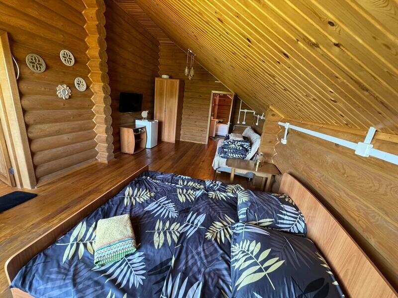 Четырехместный номер на втором этаже с видом на озеро.