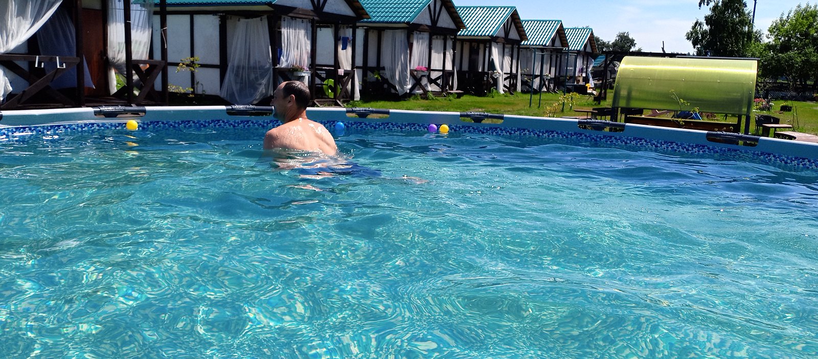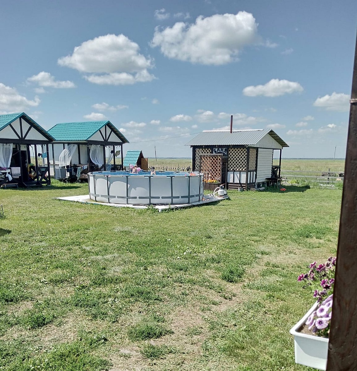Семейный отдыхДостоинстваУютные домики и площадка, отличный бассейн, детям было чем заняться (гуси, коты, собачка на территории), вечером красивое освещение, тихо, мало комаров. Внимательные хозяева.