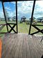 На веранде домика имеются стол и стулья.
