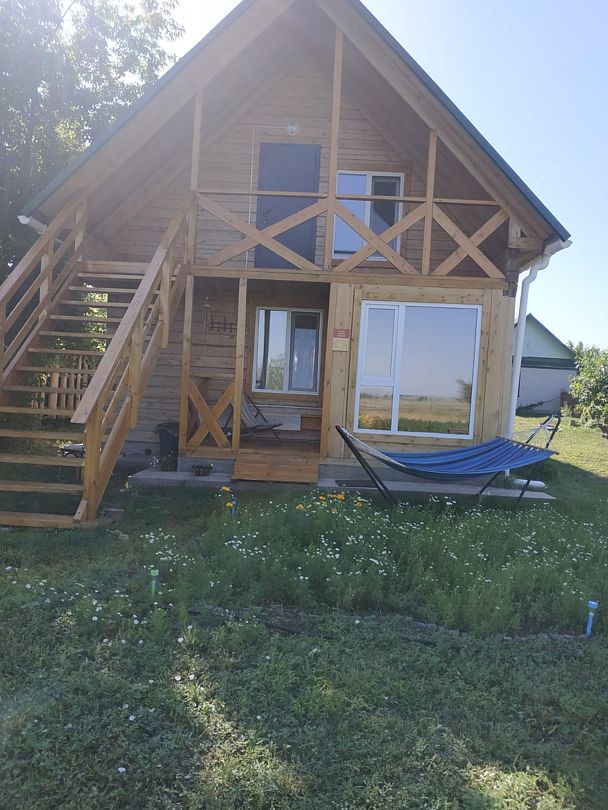 Первый этаж с полностью оборудованной кухней, телевизором, ванной комнатой со всеми удобствами. Второй этаж оборудован спальными местами, телевизором, уютным уголком для обедов с холодильником и чайником. Со второго этажа открывается панорамный вид на дикое озеро и незабываемые закаты.