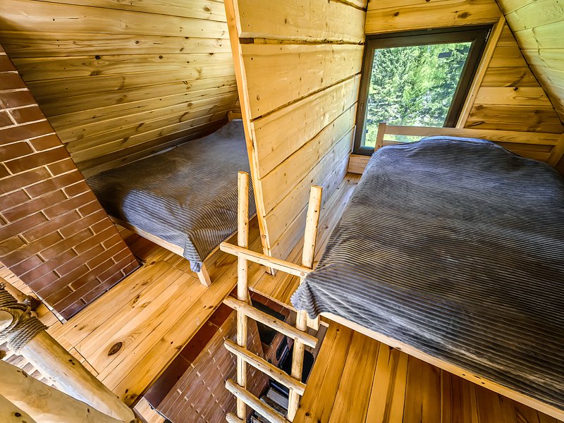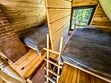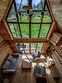 1. Домик Созерцания. Это комфортный двухэтажный дом со вторым светом из сруба хвойных деревьев. Сквозь панорамные окна открывается завораживающий вид на гору и тайгу, слышен шум реки Кытма. Атмосферу уюта создает печь с камином. Витражное остекление позволяет гостям домика ощущать себя среди природы. Такое пространство хорошо подойдет для проведения ретритов, телесных практик и для занятий йогой. А также просто получить энергетический заряд. Домик рассчитан на 4 гостей.