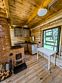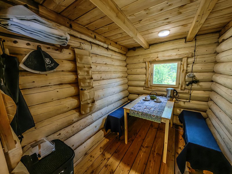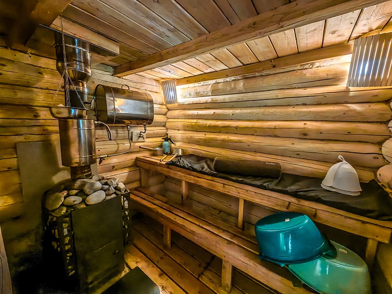 2. Таежный домик. Сделан в традициях русской избы. Дом сделан из деревянного бруса, внутри стены выкрашены белой известью. Главное место в домике занимает печь с лежанкой, на которой приятно погреться в холодную погоду. Домик подойдет для тех, ко хочет погрузиться в атмосферу деревенского быта. Домик рассчитан на 4 гостей.