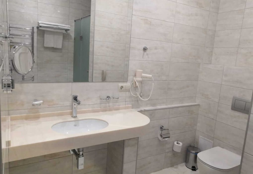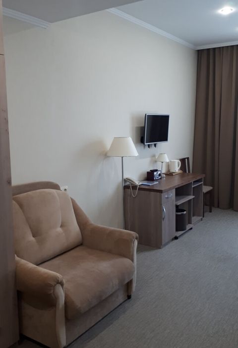 Номерной фонд санатория отличается просторностью и современным оснащением. В каждом номере — WC, душ, холодильник, телевизор, телефон, сейф, чайник, фен, халат, тапочки, Wi-Fi.