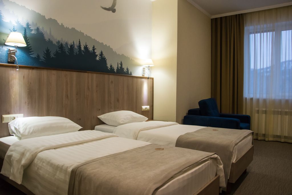 ДостоинстваРешили расслабиться здесь с семьей. Из номеров остановили выбор на двух двухместных стандартах. Взяли дополнительное место, чтобы всем хватило коек. Сам санаторий новый, потому выглядит презентабельно. Из окон открываются очень красивые виды на горы. Вообще, круто здесь все: и размещение, и уборка помещений, и персонал. Последний отличается удивительной отзывчивостью. Кормят вкусно, мы наедались до отвалу. Похудеть у вас не получится))
