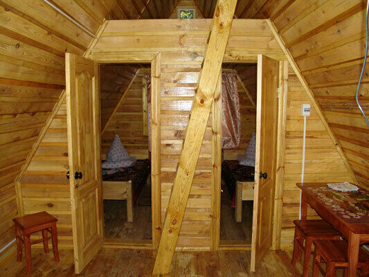 4-местный коттедж. Два этажа, две спальни, полноценная кухня.