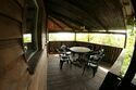 В санузле с раковиной и зеркалом есть оздоровительный душ с водой из скважины. Перед входом в дом находиться дворик “патио” - в теплое время года здесь можно за чашкой чая вокруг круглого стола с близкими людьми созерцать живописные виды реки, моста и бескрайней дали речной долины, а повернув голову смотреть на вековые деревья, растущие в нескольких метрах с их многочисленными обитателями
