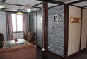 В зоне отдыха два дивана в ночное время могут раскладываться и использоваться для сна. В отдельной комнате спальне с двухспальной кроватью из окна открывается живописный вид на реку Зея. Вся мебель изготовлена из натурального дерева.