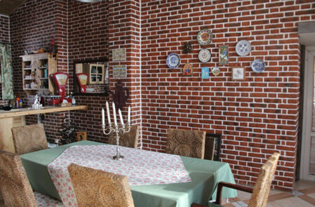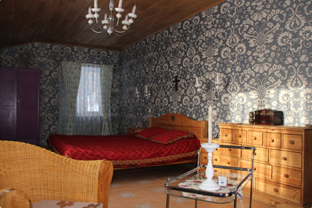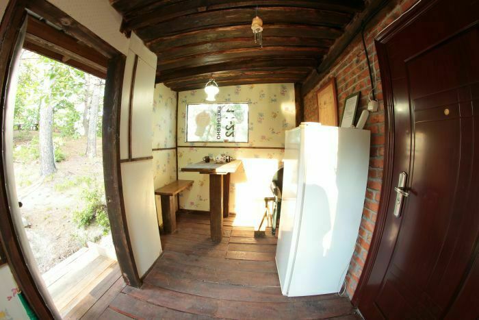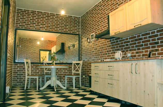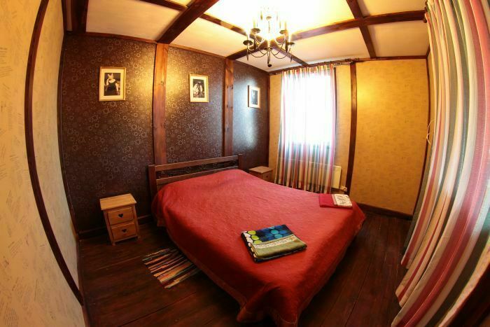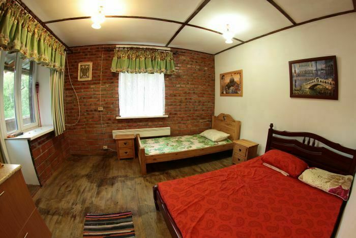 Комната в гостевом доме из красного кирпича стилизована на радость любителям рыбалки. Предок, когда-то заложивший фундамент этого дома был большой любитель рыбалки, правда больше в мечтах, поэтому оформление домика фантазийно-мечтательное в лучших традициях баек рыбаков. В домике с двумя удобными одноместными кроватями из натурального дерева приятно скоротать вечер за разговорами о прошлых уловах, но можно и построить планы на будущие, тем более, что до реки всего метров 300. Уличная печь с мангалом для приготовления барбекю из сежевыловленной рыбы и варочной зоной для мангала и котелка для ухи дает шансы удивить доброжелательных соседей кулинарными изысками. Смыть чешую с себя после состязаний с рыбой можно как в удобном умывальнике возле печи, так и под струйками теплого душа в своем номере. А чтобы набрать воду со скважины для ароматного чая достаточно только открыть дверь туалета в своем номере и открутить кран. Из окна открывается живописный вид на лес с вековыми соснами, а выйдя из домика вид на Зею. Живущие в непосредственной близости белки и разнообразные птицы у многих кто здесь был разбудили страсть к фотоохоте.