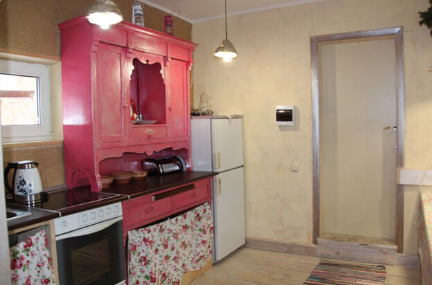 В столовой-кухне есть индукционная варочная поверхность, микроволновая печь с грилем, холодильник. К вашему распоряжению имеется посуда, набор кастрюль и сковороды.