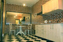 Площадь номера Люкс 70 кв.м. В зоне кухни площадью вся мебель изготовлена только из натурального дерева, шкафы для посуды имеют качественный удобный механизм с доводчиками.