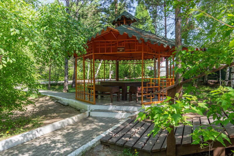 На территории базы есть всё для полноценного отдыха, спортивная площадка, беседки. В комплексе предусмотрен конференц-зал, бар. Летом бассейн, а зимой горки и каток. Для детей построен целый детский городок.