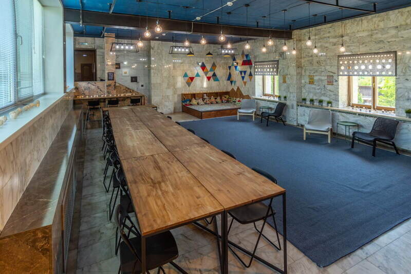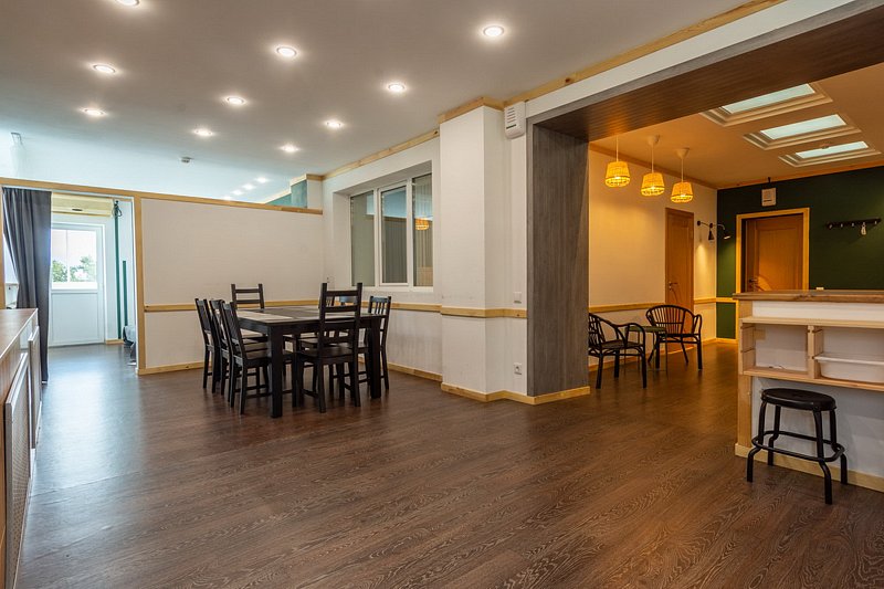 - Уютная зона отдыха: зона отдыха обшита теплым деревом. Предоставляются в аренду дартс, нарды, шашки.