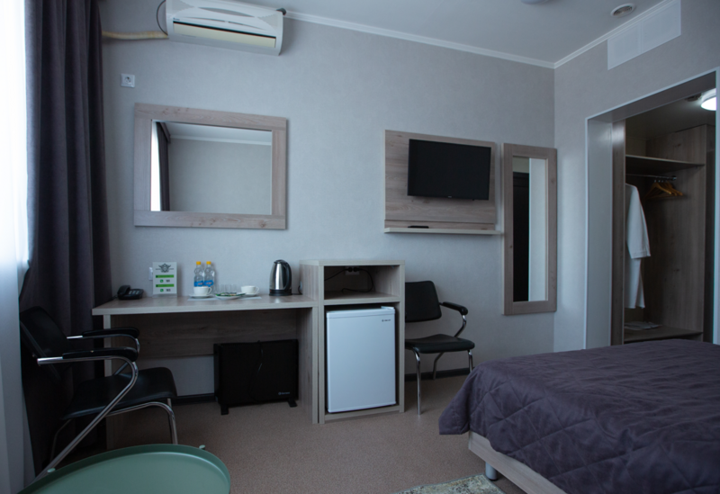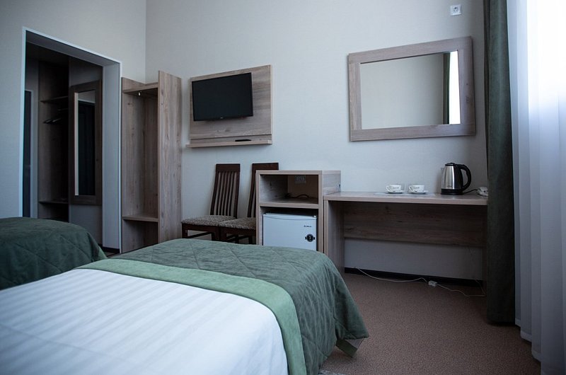 Двухместный номер площадью 17 м² . В номере - 2 отдельные кровати, кондиционер, холодильник, чайник, чайные пары, столик, два стула, шкаф, прикроватные тумбочки, телевизор со спутниковыми каналами. Шторы блэкаут. В номере также есть собственная ванная комната с санузлом.