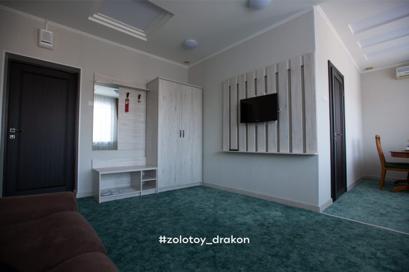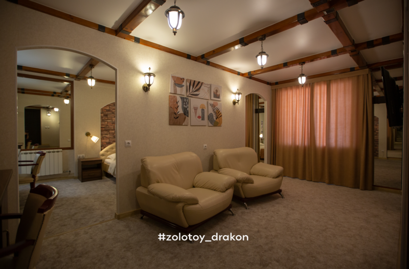 Просторный двухкомнатный номер, состоящий из гостиной, спальни и ванной. Идеально подходит для длительного проживания, для романтических встреч, для молодоженов. В гостиной находятся диван с креслами, журнальный столик, мини-бар, чайник, телефон, телевизор, спутниковое телевидение, бесплатный Wi-Fi. Столовая зона с раздвижным столом и стульями.