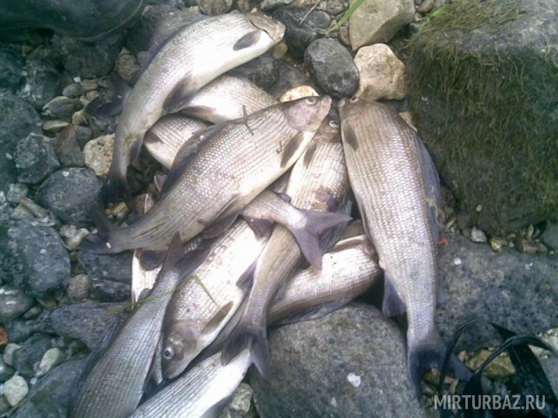 Леща в реке очень много. Ловить его лучше всего с лодки, часто на глубине всего 1 метр. Во время массового вылета поденки хариуса можно ловить без всяких хитростей на обычную удочку, насадив на крючок муху. С исчезновением поденки, рыба уходит на глубину и ловить ее становится сложнее.