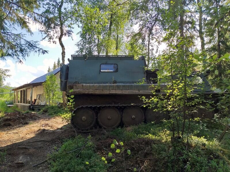 Добираемся до базы в 2 этапа. Сначала едем на машине 110 км по технологической дороге Севералмаза до бывшего посёлка геологов Поморье (Тучкино). В посёлке у нас арендован участок и есть гараж, где храним снегоходы и вездеход ГТС. Пересаживаемся на ГТС(лето-осень)или снегоходы и едем до базы 45 км по глухой тайге и болотам. Вообще, дорога до нас - это большое экстримальное приключение(особенно на вездеходе).