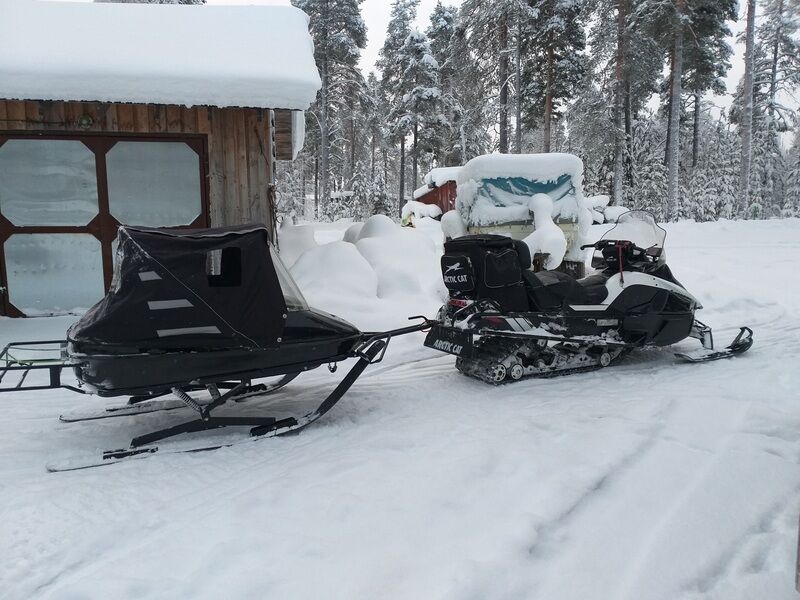 Зимой едем на снегоходах с крытыми снегоходными прицепами "Метелица" и "Вьюга". Доставка до базы 2000 р с человека (это тоже туда и обратно).