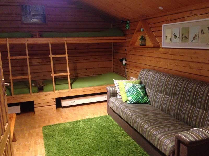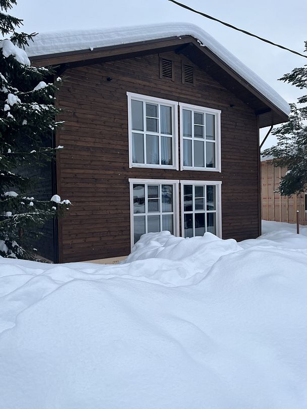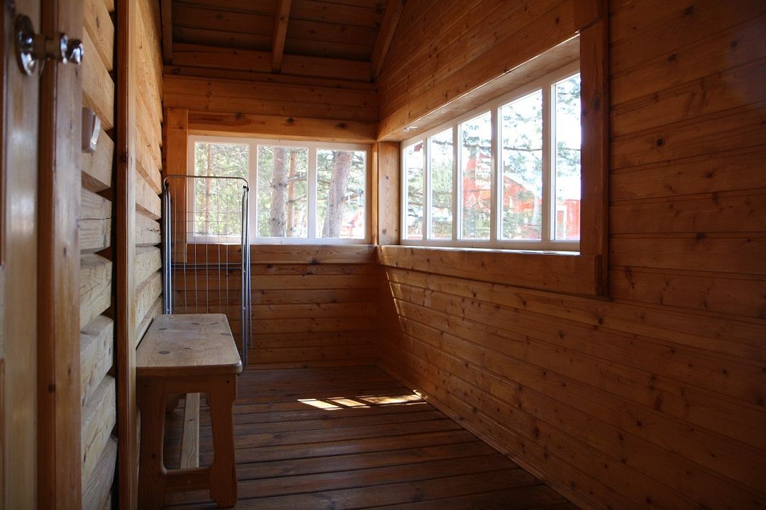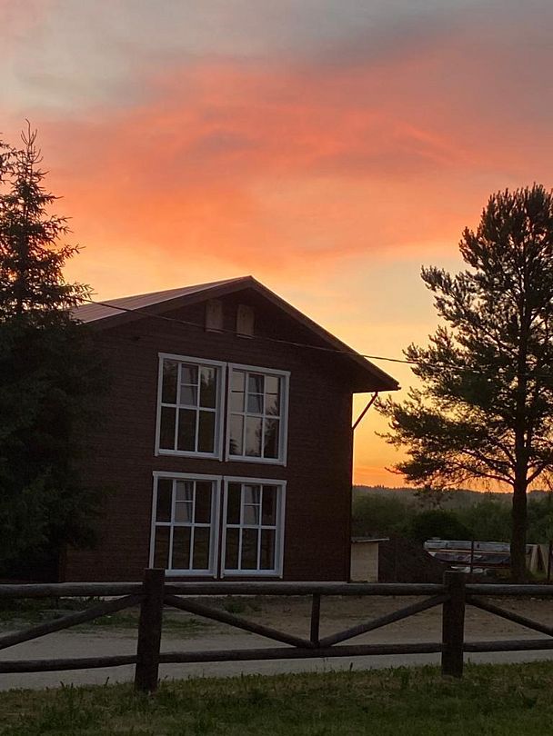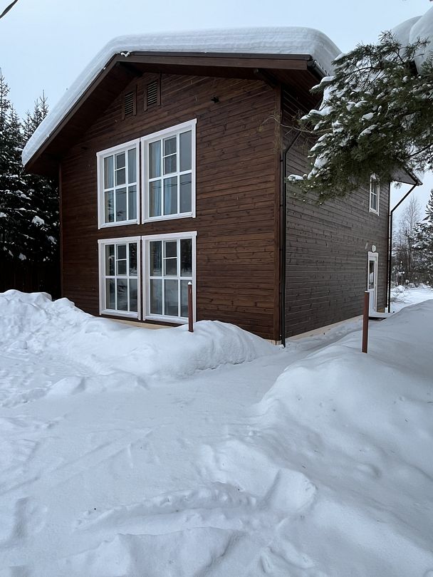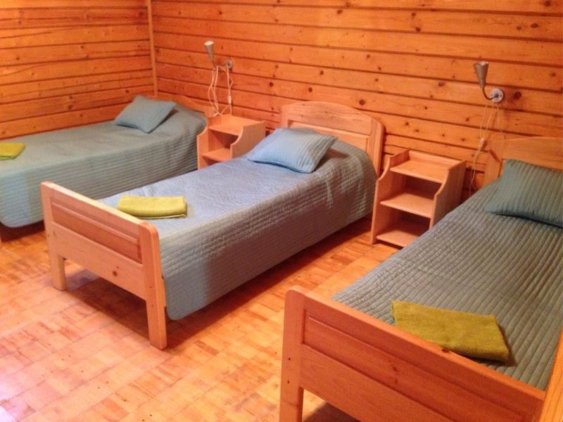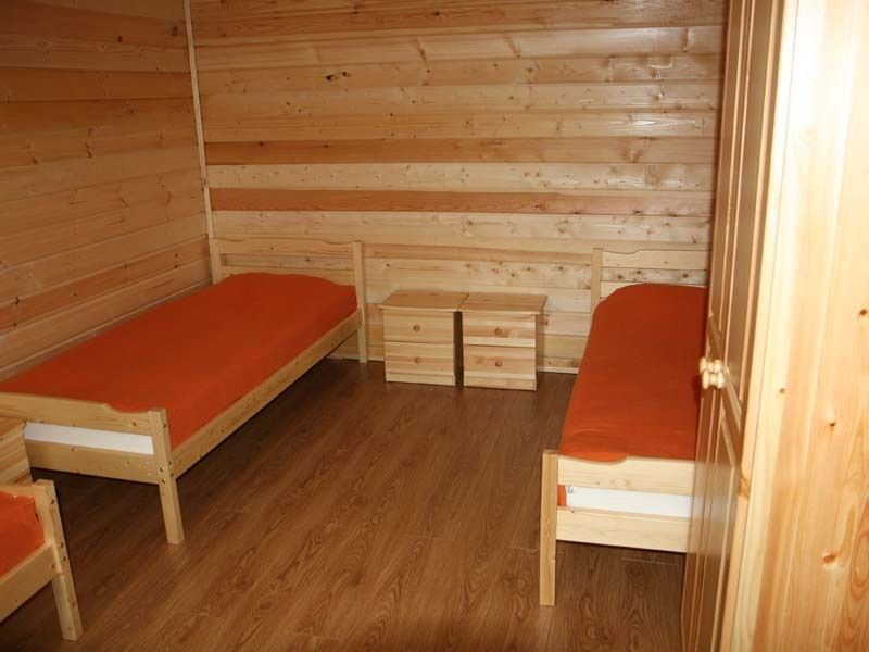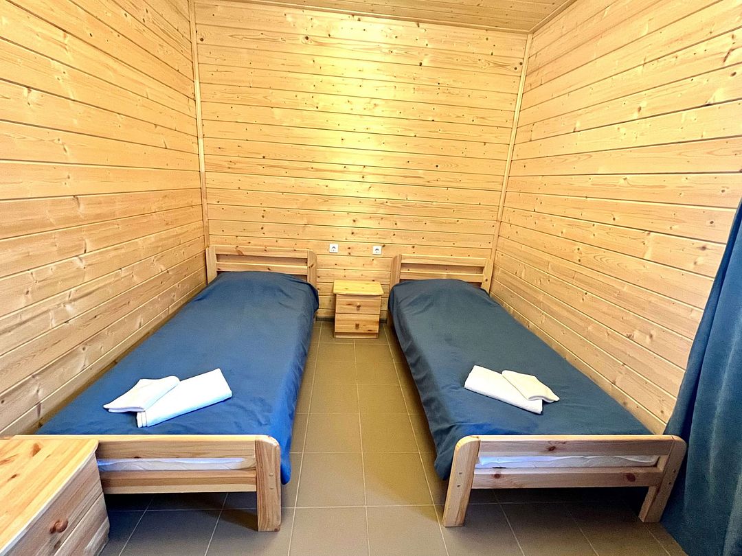 Двухэтажный коттедж на шесть человек. Состоит из трех спален (по две односпальные кровати в каждой), кухни, туалета/душевой, прихожей, холодной прихожей для хранения спортивного инвентаря.