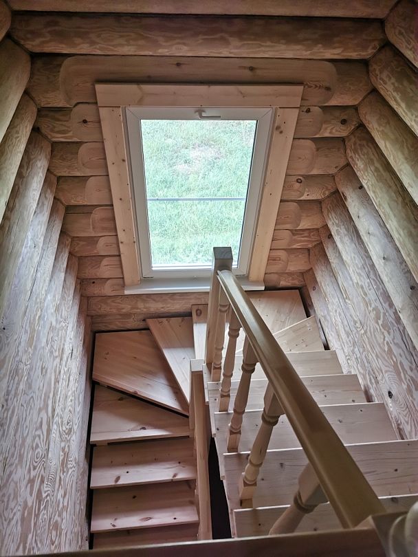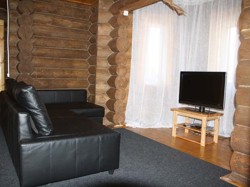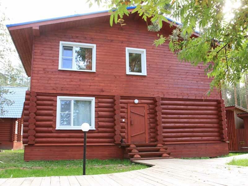 Двухэтажный коттедж на десять человек состоит из четырех спален, холла, двух санузлов, душевой, прихожей, есть мини кухня с микроволновой печью, холодильником и чайником. Дом расположен в нескольких метрах от кафе, в ста метрах от начала лыжных трасс, а также в двадцати метрах от реки Устья и русских бань комплекса.