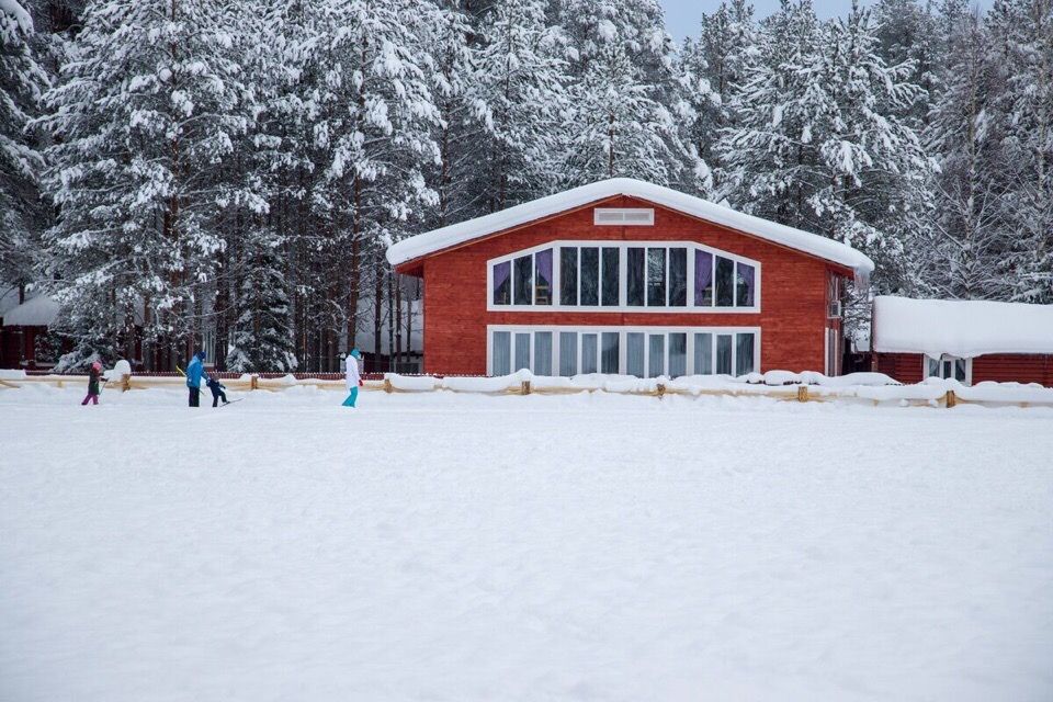 Коттедж расположен в двести метрах от кафе, в пятидесяти метрах от реки Устья, прямо на лыжном стадионе.