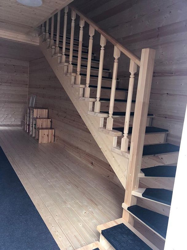 Коридор холодный с лестницей на второй этаж, есть много места для хранения спортивного инвентаря.
