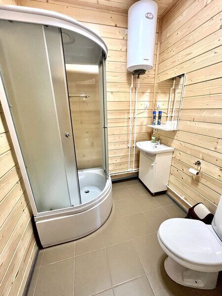 Инфраструктура: зона отдыха, душРасположение: выход к рекеМинимальное время аренды: 3 часаДвухэтажная русская баня в комплексе «Малиновка» предоставляет комфортное пространство для отдыха до восьми человек. На первом этаже гости могут насладиться уютной комнатой отдыха, дровяной парилкой и мойкой, а на втором этаже расположены две комнаты для проживания, вмещающие до пяти человек, и туалет.